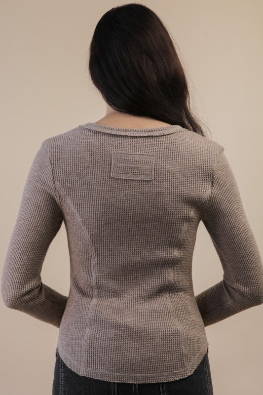 Meet your new go-to essential: the Market Day Button Down, where laid-back charm meets effortless style. Perfect for brunch dates, weekend errands, or casual office wear, this fitted knit top is designed to move with you while keeping you looking polished. Button Down Fitted Knit Casual Top - Round Neck - Long Sleeve - Round Hem - Raw Edge Detail
