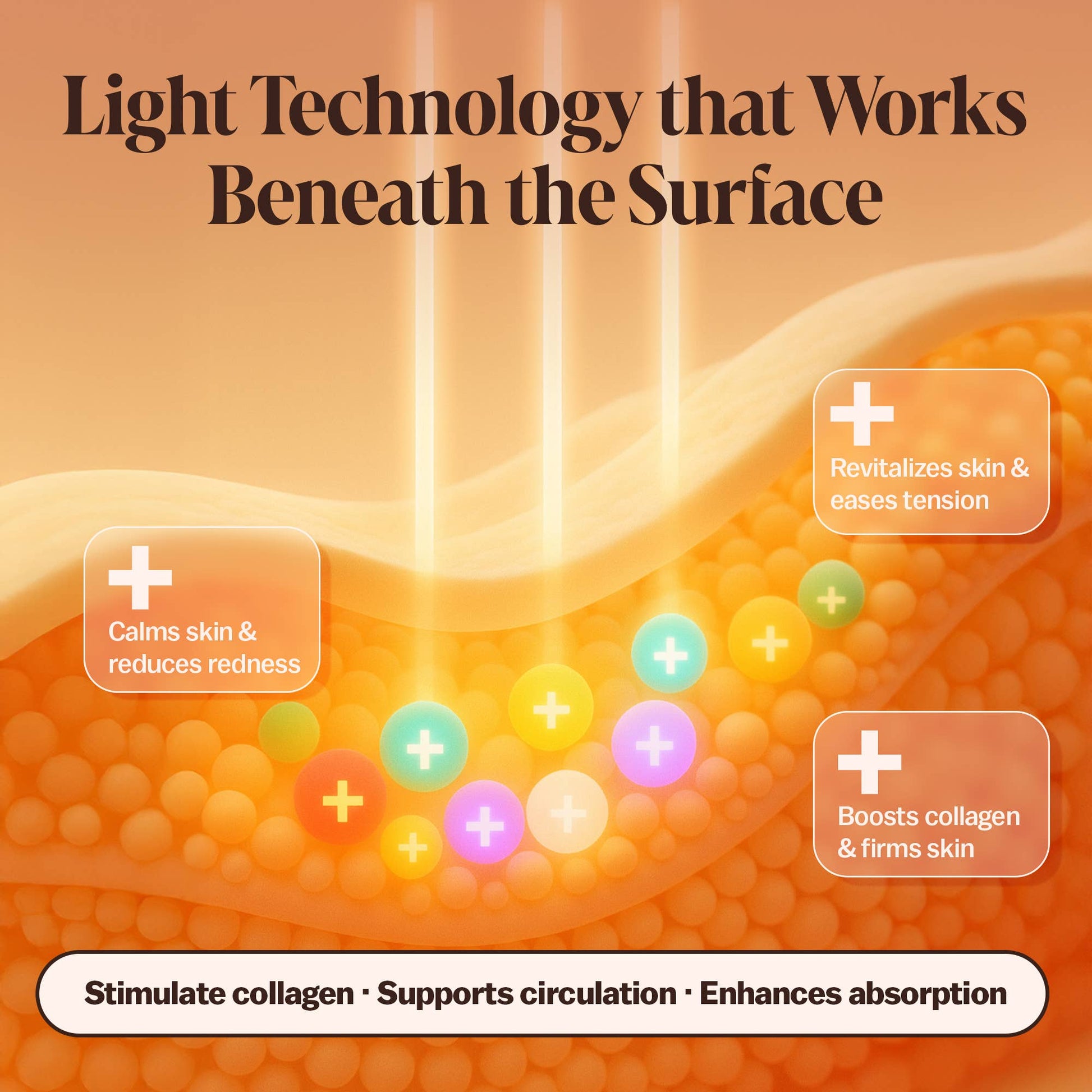 • 7 LED light settings targeting multiple skin concerns—firming, brightening, and calming