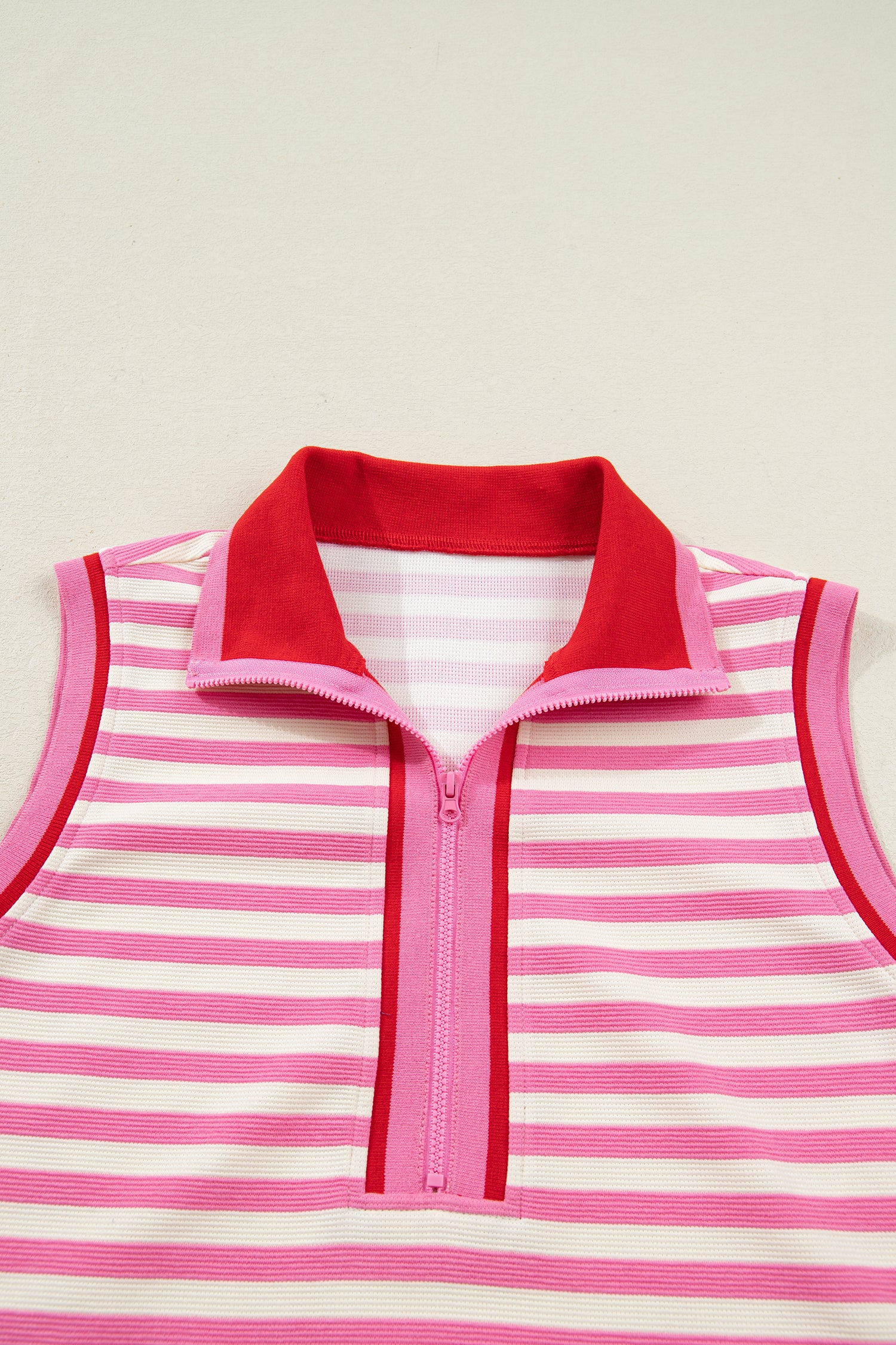 Sachet Pink Textured Stripe Print Contrast Trim Zip Collar Sleeveless 2pcs Skort Set