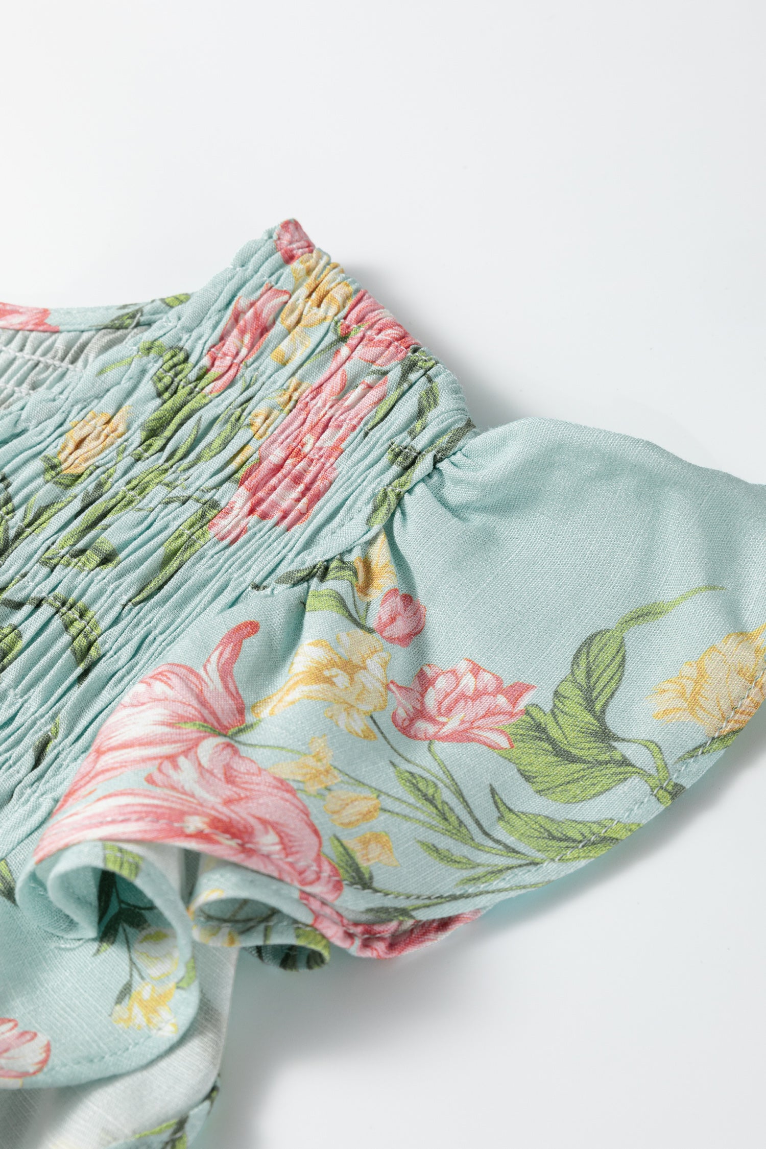 | Details | Shirred,Ruffle | Neckline | V Neck |